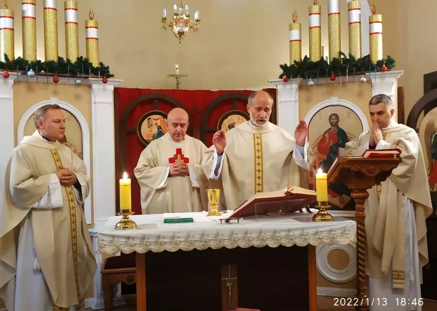 На здымку а. Кшыштаф Каральчук SJ складае вызнанне веры падчас інгрэсу ў парафіяльную супольнасць.
