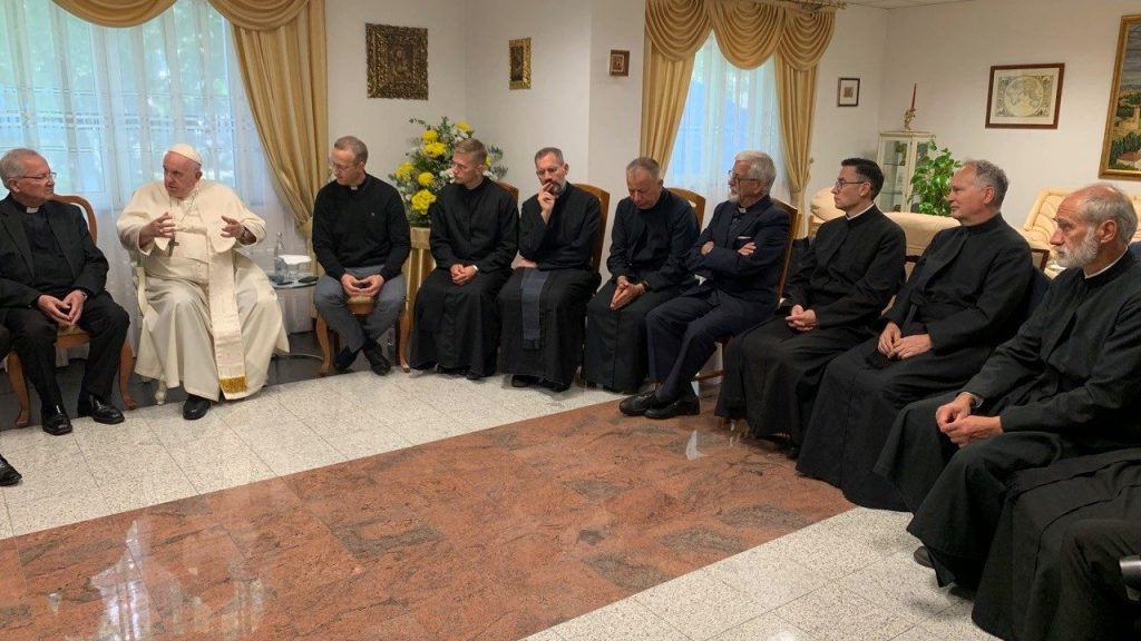 Ужо стала традыцыяй, што падчас сваіх падарожжаў за мяжу Папа Францішак выдзяляе час, каб сустрэцца са сваімі сабратамі па ордэну – мясцовымі езуітамі, каб паразмаўляць з імі на розныя тэмы, даведацца пра іх працу. Так раней адбылося ў Польшчы (падчас Cусветных Дзён Моладзі ў 2018 г.), у Славакіі, на Мальце, у Канадзе, і зусім нядаўна ў сталіцы Казахстана, дзе Святы Айцец удзельнічаў у З’ездзе лідараў сусветных і традыцыйных рэлігій. Езуіты цяпер не служаць на тэрыторыі Казахстана (хоць раней там прысутнічалі ў некалькіх месцах і нават пабудавалі касцёл у будучай сталіцы – Астане, які стаў катэдральным; у ім таксама маліўся Папа, сустракаючыся з духавенствам). Па гэтай прычыне на сустрэчу з Францішкам паклікалі членаў Таварыства Езуса з рэгіёна, да якога адмінстрацыйна належыць гэтая сярэднеазіяцкая краіна: акрамя Кыргызстана і Расіі, гэта і Беларусь, таму віцебскія езуіты – а. Клеменс Верт і я – таксама атрымалі запрашэнне прыбыць на сустрэчу. Шчыра кажучы, спачатку я сумняваўся, ці варта выбірацца ў такі далёкі шлях: ці сапраўды можам назваць сябе “мясцовымі езуітамі”, праехаўшы 3000 км? Але езуіцкая паслухмянасць узяла верх і мы купілі білеты на самалёт. Забягаючы наперад, скажу, што яно было таго варта. Акрамя нас, на запрашэнне адгукнуліся 17 сабратоў, якія служаць у Маскве, Санкт-Пецярбургу, розных месцах Сібіры і Кыргызстана. Разам мы прадстаўлялі 11(!) розных народнасцей.