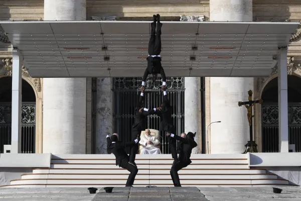 Галоўная выява: выступ акрабатаў з Кеніі падчас агульнай аудыенцыі на плошчы Святога Пятра ў Ватыкане 30 лістапада 2022 г. (Крыніца: Vatican Media).
