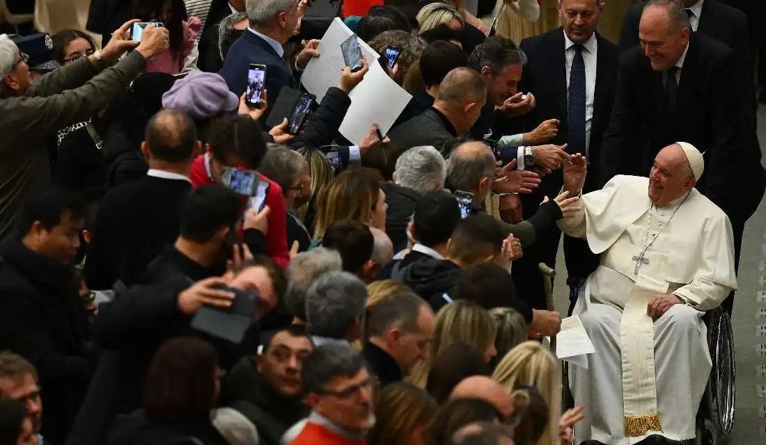 Галоўная выява: Папа Францішак вітае прысутных на штотыднёвай агульнай аўдыенцыі ў зале Паўла VI 7 снежня 2022г. (Крыніца: AFP).